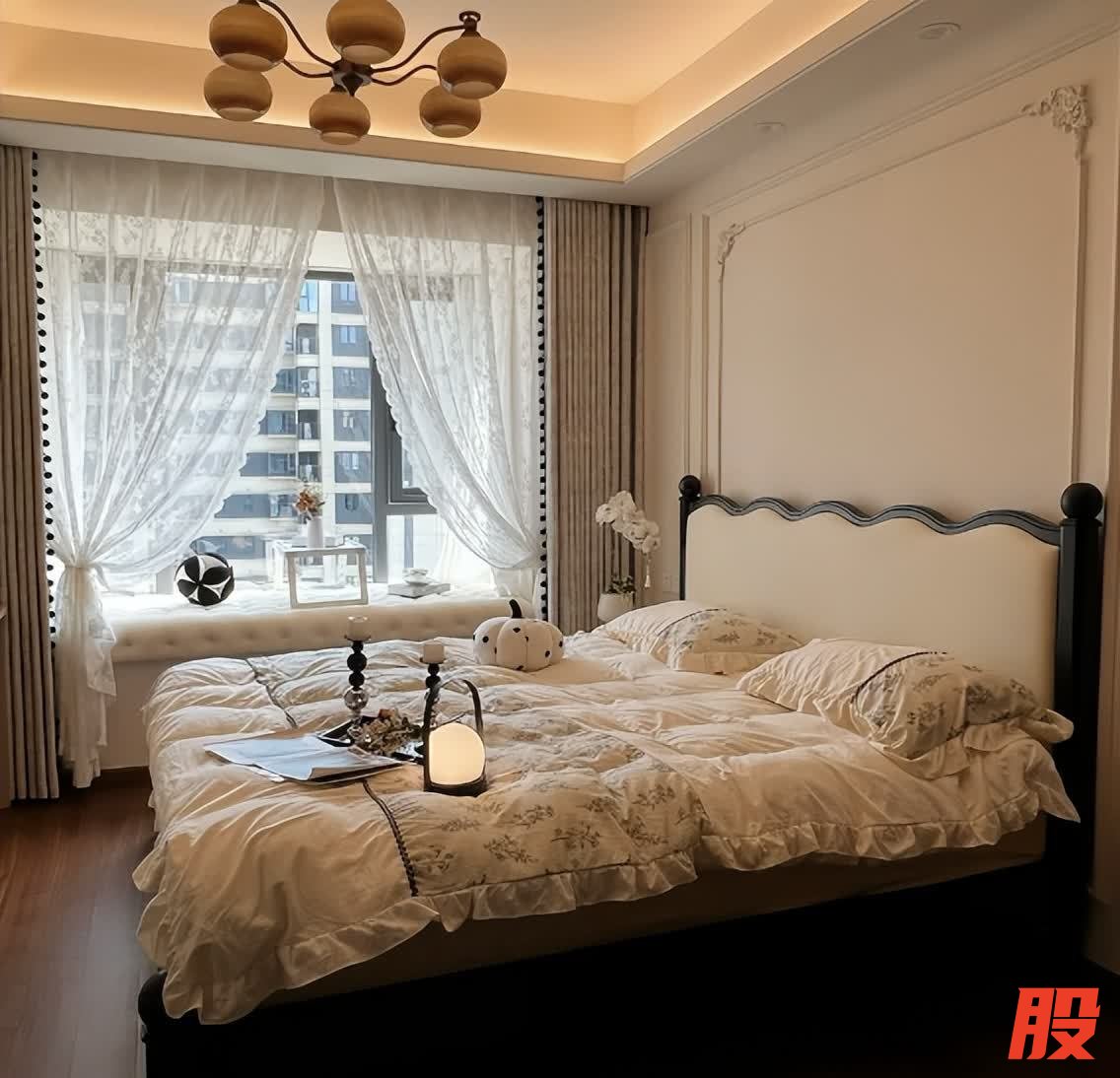 把卧室床靠着飘窗也是很不错的做法,很多人都觉得这样会浪费飘窗的空间,但我觉得将床放在这里,不仅不会占空间,反而能起到延伸到作用,