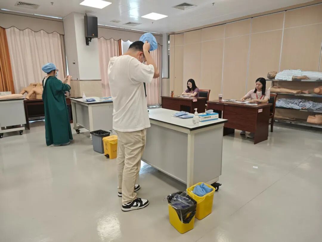 为检验学员们的学习效果,培训期间设置了多轮考核环节。学员们在技能培训中认真学习并通过了六步洗手法、穿脱隔离衣技术等技能考核;在急救基本操作考核中,学员们熟练展示了单人心肺复苏操作;同时,岗前综合考核与心理素质测试,全面评估了学员的专业知识与心理应对能力。通过这些考核,学员们巩固了所学知识,发现了自身不足,也为未来的学习和工作提供了前进的方向。