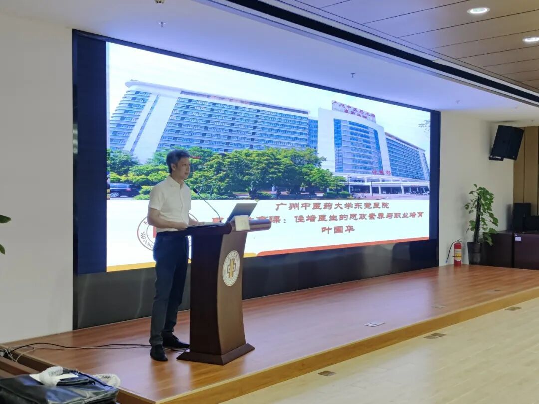 培训的第一课由医院党委书记叶国华带来。他以“入培第一课”为主题,深入讲解了医院的发展历程与文化精髓,并强调了“传承精华、守正创新”的重要性。叶书记勉励学员们树立正确的职业观和价值观,以饱满的责任感与使命感投入到中医药事业,坚定传承中医、济世救人的信念。思政教育的开启,犹如一盏明灯,为学员们未来的医学道路指引方向。
