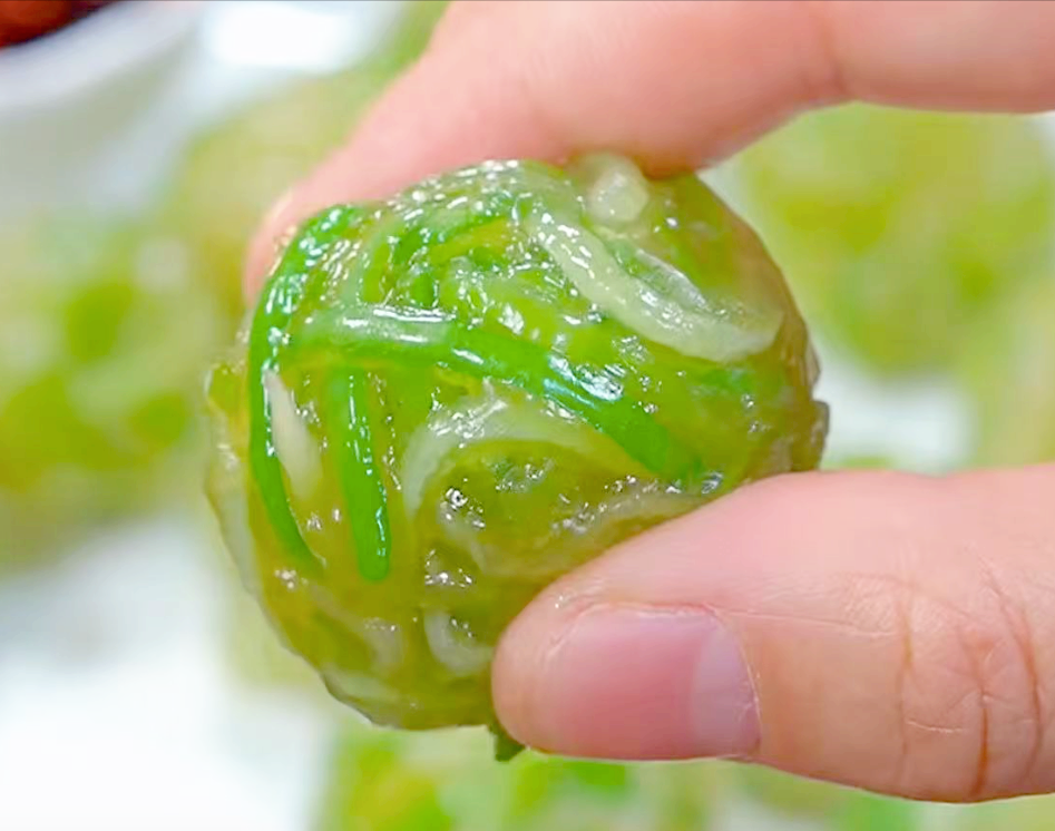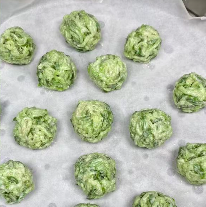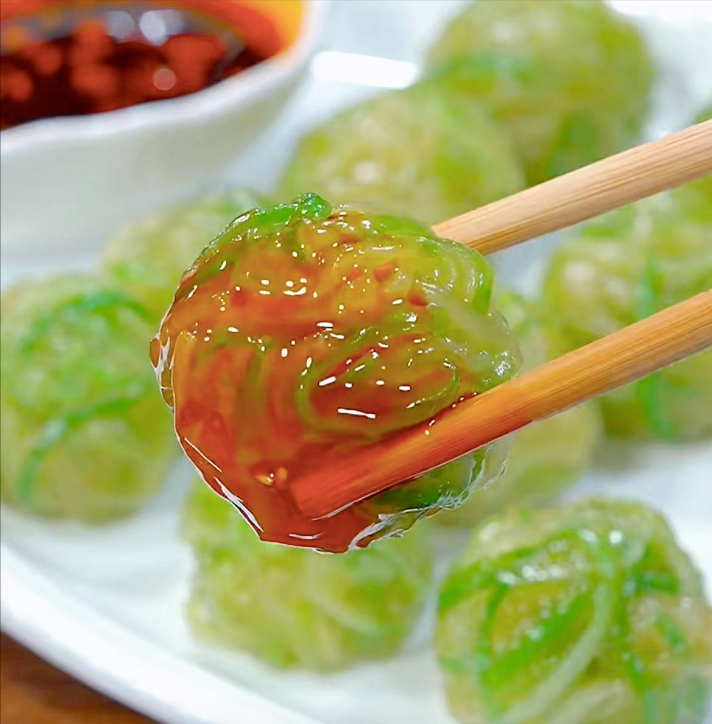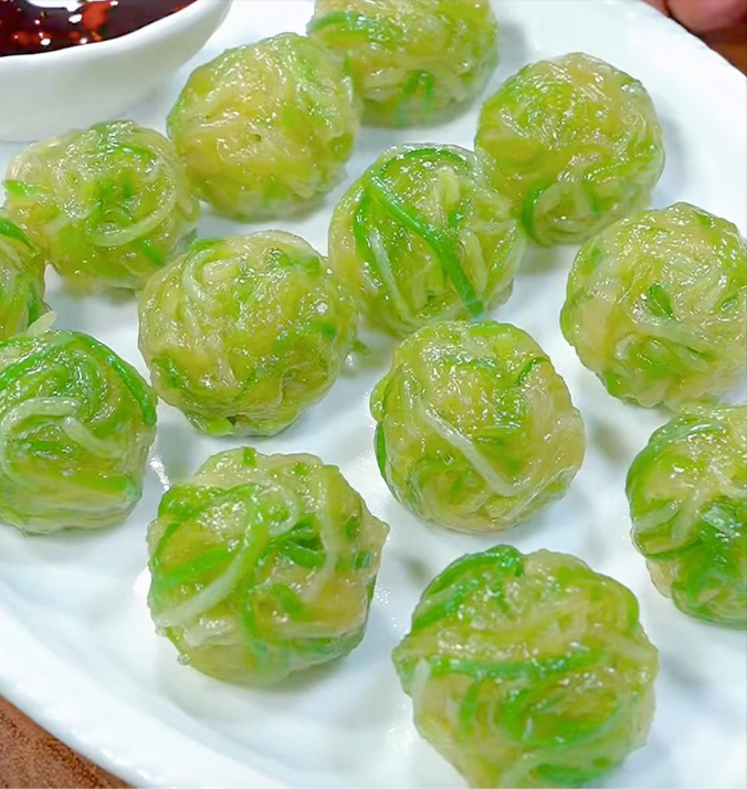 10、蒸好的萝卜丸子,色泽碧绿诱人,口感q弹美味,吃起来很香哦。